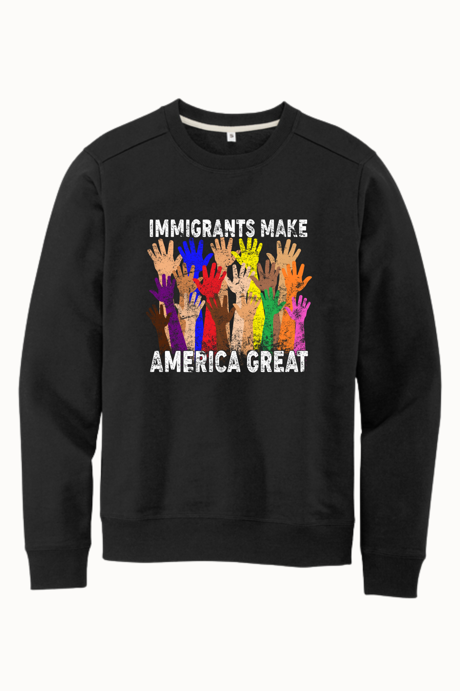 This design celebrates the countless people who have come from every corner of the world and helped shape the country through their work, culture, creativity, and resilience. The raised hands represent the many voices, stories, and communities that continue to build, grow, and strengthen the nation every single day.