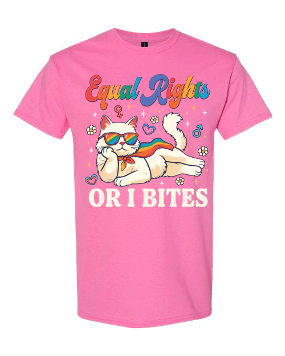 Sassy, fluffy, and not here for inequality—this cat demands equal rights and isn't afraid to use its teeth. Rainbow drip and attitude included.