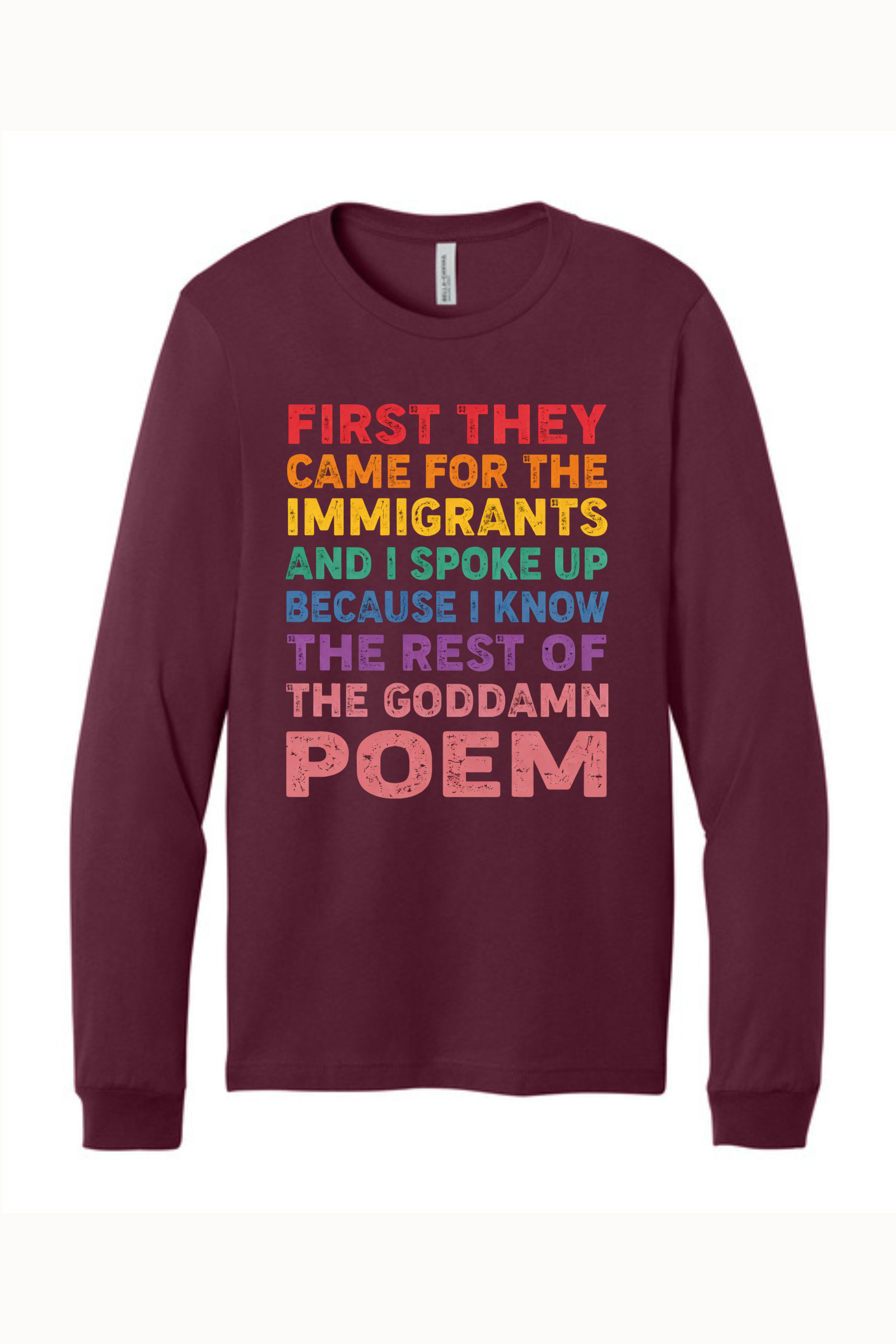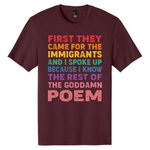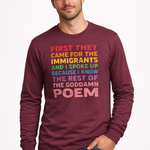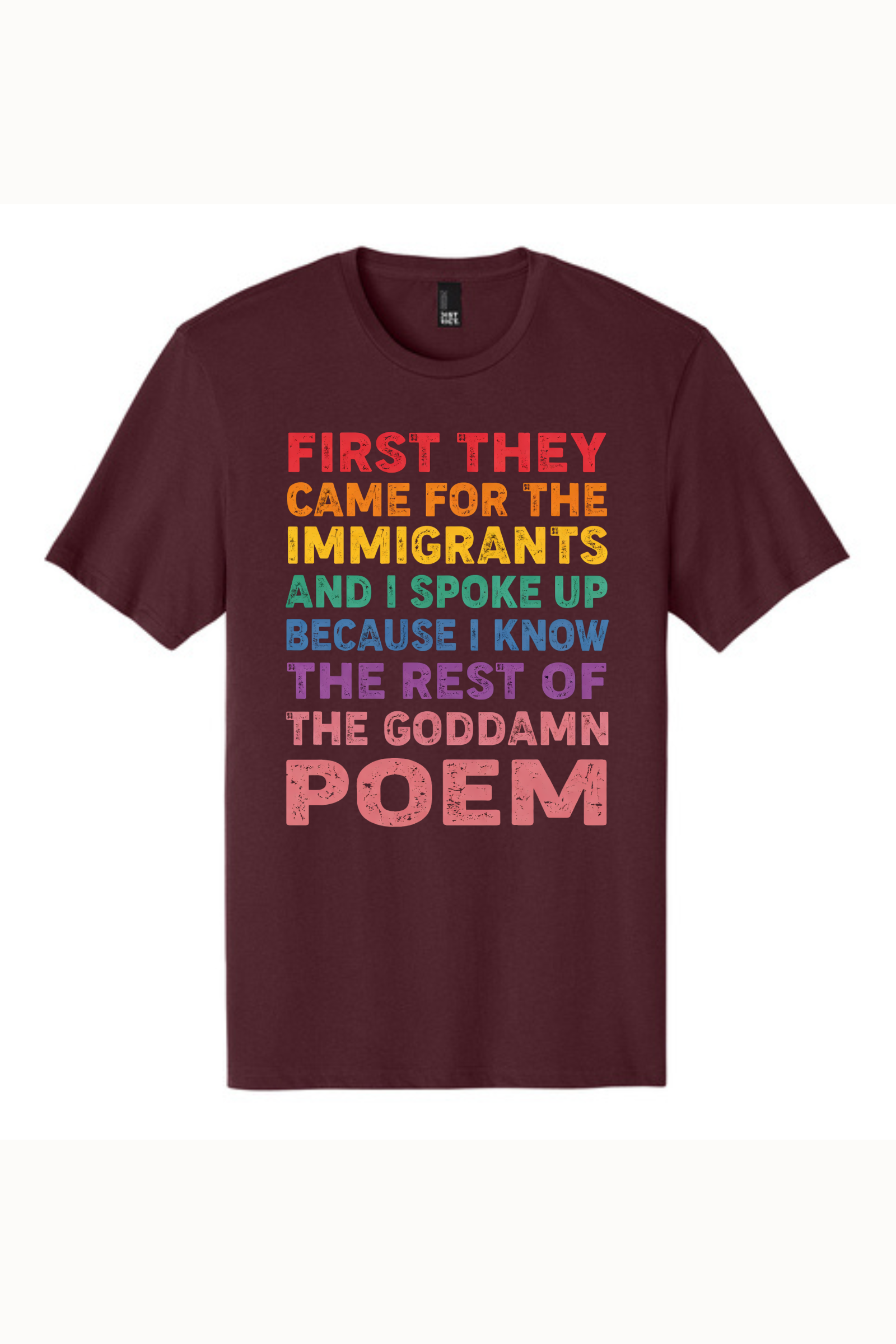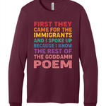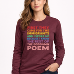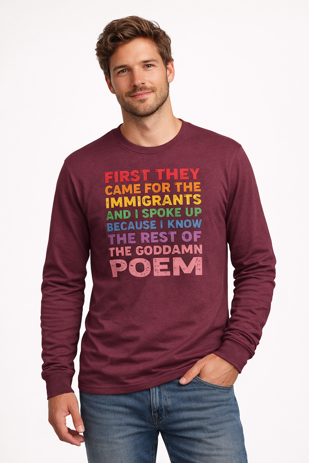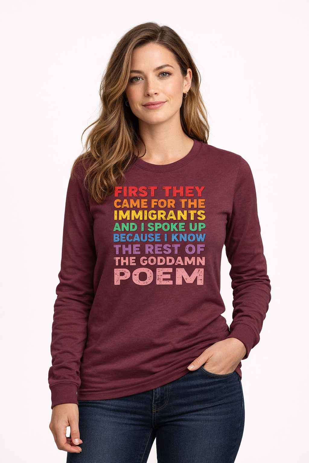 This shirt is a reminder that silence has consequences. “First They Came For Immigrants” isn’t just a phrase — it’s a line drawn in the sand. It speaks to the pattern we’ve seen before: target the vulnerable, test the outrage, normalize the cruelty.