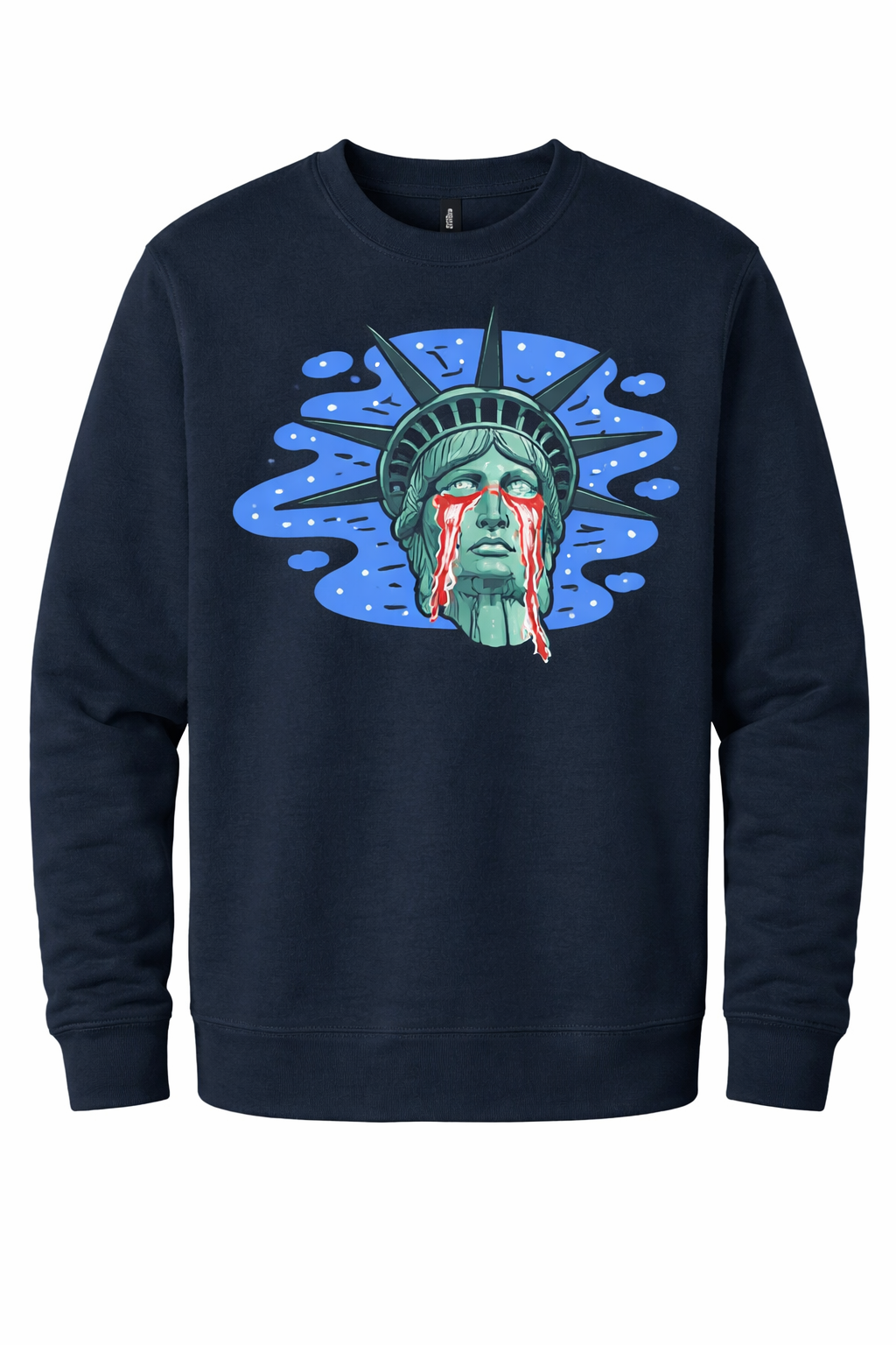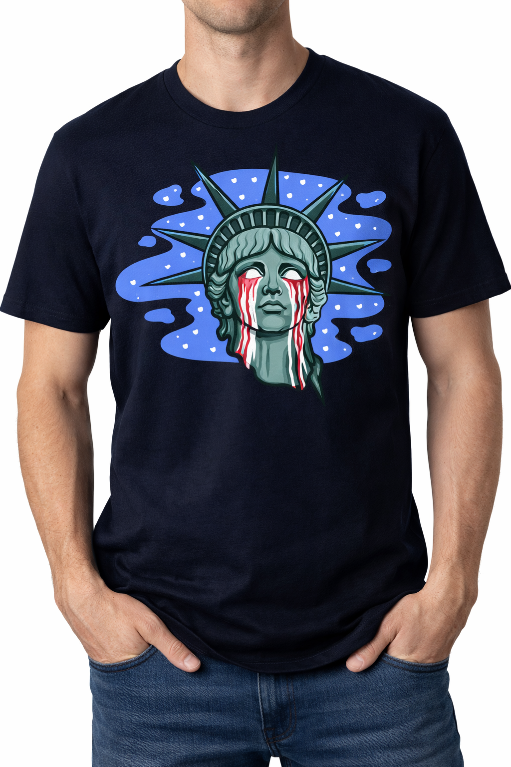 This design takes a symbol of refuge and exposes the cost of abandoning it. The tears aren’t subtle. They aren’t abstract. They’re a response to detention, family separation, and the normalization of harm carried out under the banner of “law and order.” This isn’t metaphor for metaphor’s sake—it’s a reflection of what happens when enforcement replaces humanity.