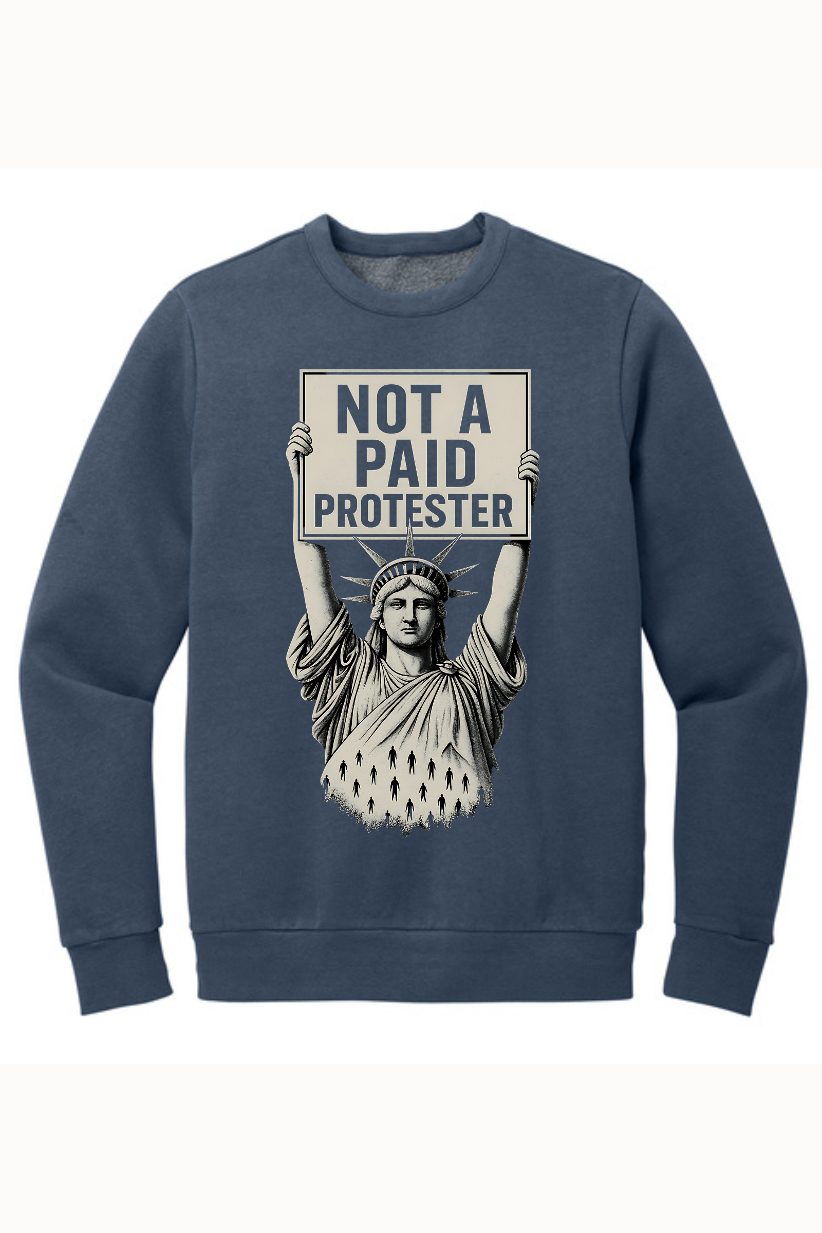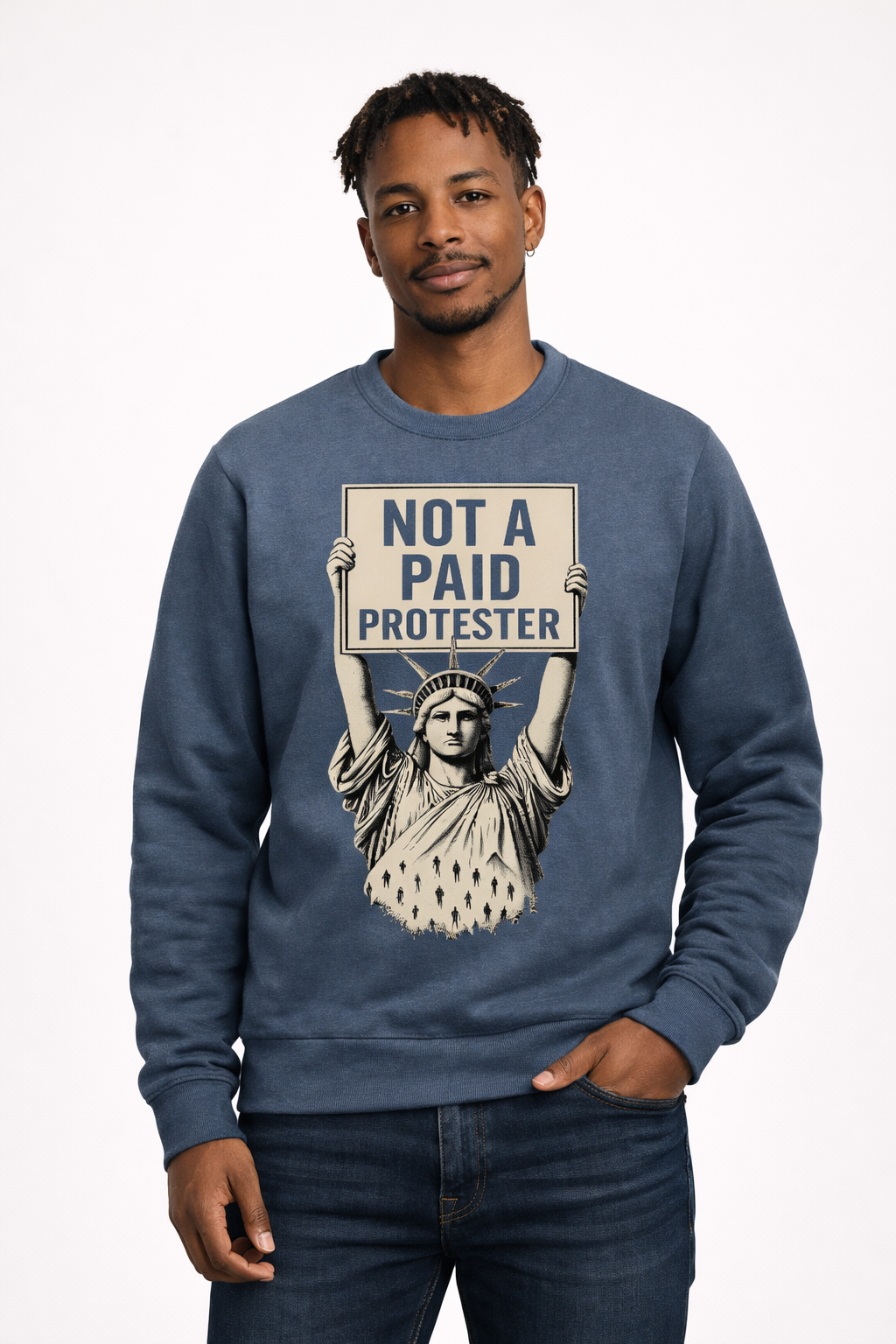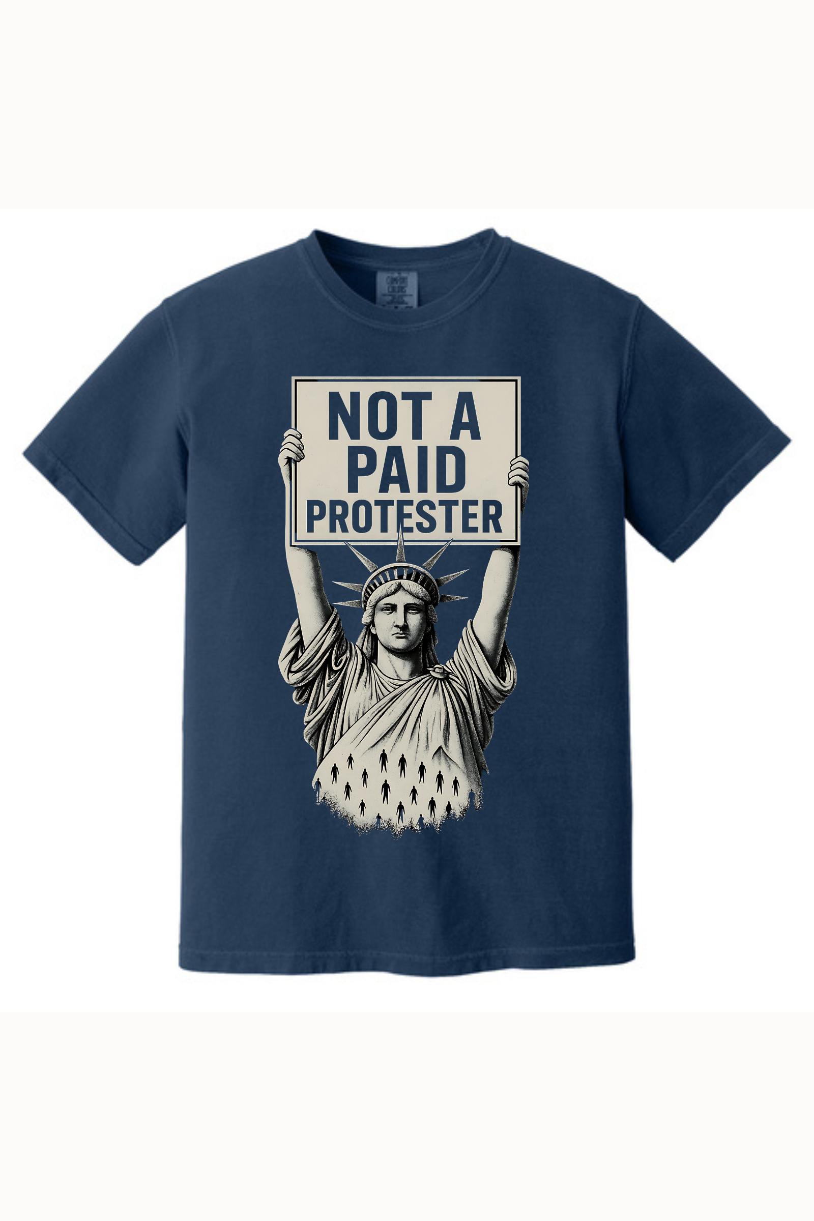 “Not Paid Protester” is for everyone who’s been told their outrage must be sponsored — like caring about human rights, democracy, or basic decency couldn’t possibly be genuine. It’s sarcasm with teeth. A direct shot at the idea that dissent has to be bought.