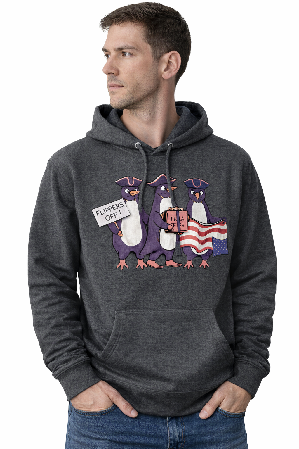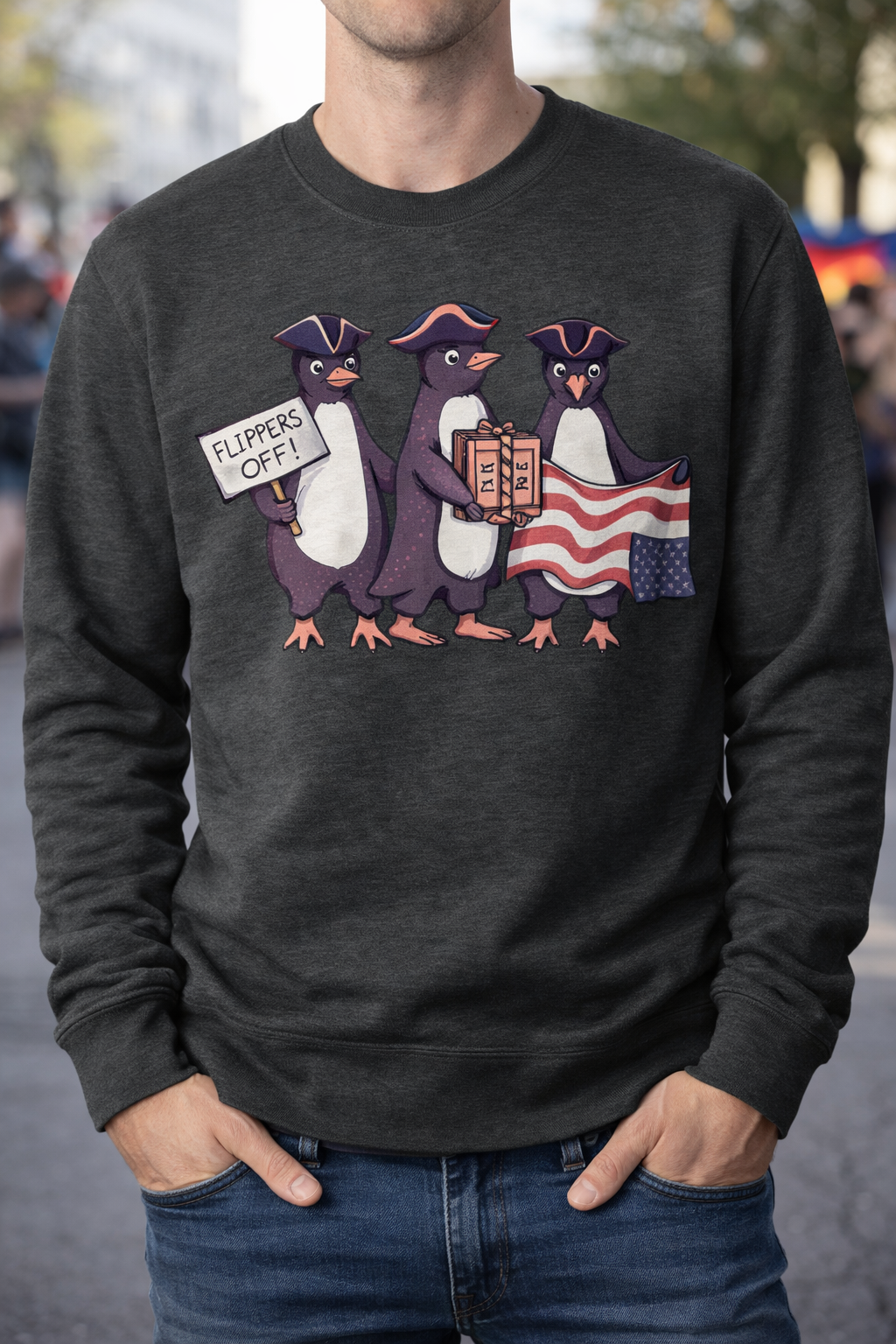 ICE depends on fear and silence. This shirt rejects both. It’s a reminder that protest isn’t disrespectful, dissent isn’t unpatriotic, and compliance has never been the same thing as freedom. From tea crates to raised flippers, the message is clear: when power becomes abusive, pushing back is tradition.